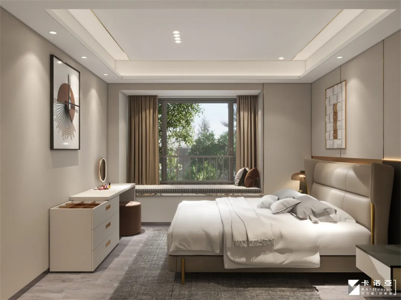 臥室的設計更注重舒適度與功能性,集睡眠、梳妝、收納于一體,步步皆優(yōu)雅,打造五星級酒店般的居住體驗。