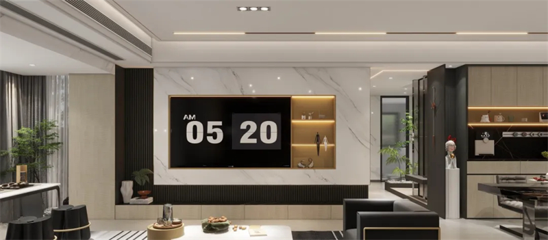 客廳設計拒絕傳統(tǒng)單一,采用懸浮柜+半開放柜組合的方式,構(gòu)建客廳收納美學。半開放柜可陳列雜志書籍,可展示心愛手辦、潮玩,賦予空間N+1的功能,每一處細節(jié)都精致熨帖。
