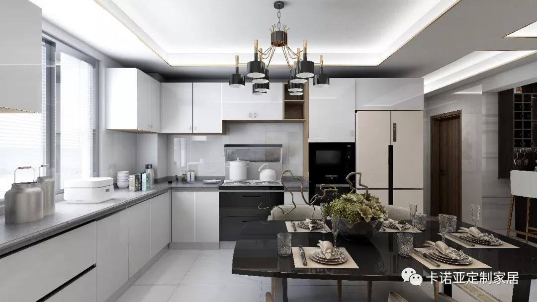 設(shè)計巧思:白、黑并佐以尊奢的金屬色,高級感成為輕奢空間恒久不變的命題,讓吃飯成為一種有儀式感的藝術(shù)行為。