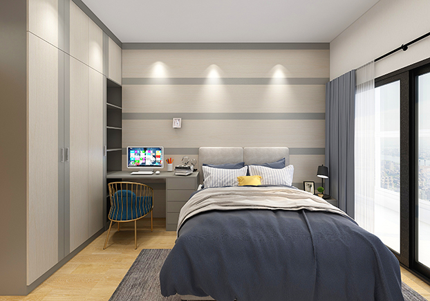 榻榻米+書桌+儲物柜+衣柜,平常可以做作業、看書,多功能室完成,既是書房也是臥房,儲物能力MAX。