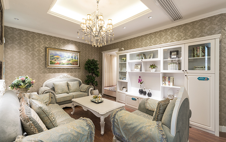 純色的家具、大氣婉約的吸塑造型,配以素雅的軟裝和歐式經(jīng)典紋飾的沙發(fā)及茶幾,點綴帶有抽象印花圖案的抱枕,營造浪漫、靜雅的家居空間。