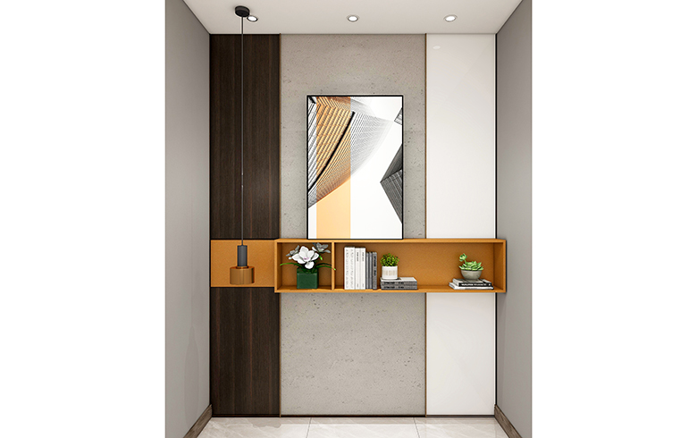 采用白色、灰色、深木色混搭,由淺入深,充滿了視覺的張力,中間采用棕色皮紋腰線,設計開放式展示柜,可擺放各類飾品、綠植及書籍,好看又實用。簡潔的線條,精致耐看的裝飾細節,前衛、時尚、與眾不同,空間更出彩。