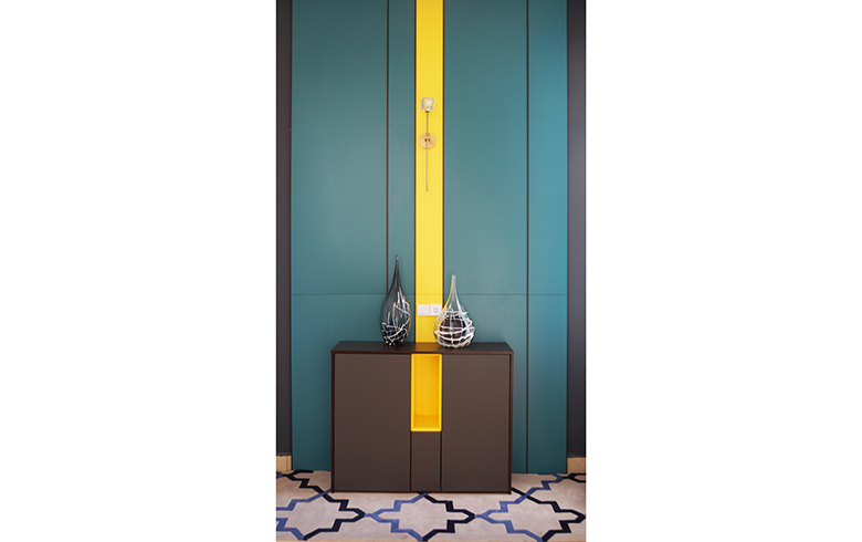 整堵護墻板以天湖藍為主色調,活力橙點綴其間,采用創意的混搭撞色設計,瞬間點亮了墻面的活力與視覺沖擊力。
