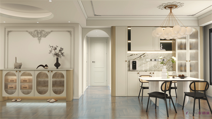 此方案是一套三室一書房加客餐廳的結構,根據客戶要求整體采用輕法式的風格,同時多個空間聯動,拉近家人之間的關系。為了區分生活和工作,采納了用緊靠客廳一個臥室空間改造成書房獨立出來不會影響整體的休息區。生活不只有工作!設計理念:讓設計包容生活的瑣碎,融入生活,愛上生活。整家視界 全案生活|第六屆卡諾亞整家設計精英聯賽