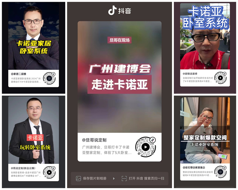 本屆建博會(huì),卡諾亞打通線上線下流量場(chǎng),橫向做輻射,縱向做滲透。以“卡諾亞臥室系統(tǒng)超級(jí)IP”為傳播主線,特邀抖音達(dá)人@旦哥說定制、@娜仁格日勒、巖石哥@家居裝企、@家居二層樓、@苑說定制、@胡鋒說裝修,小紅書達(dá)人@ Snow雪芙、@愛生活的阿胖,以及權(quán)威媒體搜狐焦點(diǎn)家居、慧亞招商網(wǎng)、中華全屋定制網(wǎng)等紛紛前來卡諾亞展館,進(jìn)行專業(yè)探展與沉浸式體驗(yàn),以直播、短視頻等形式,集體為卡諾亞臥室系統(tǒng)背書。這些家居頂流KOL,展前利用短視頻打Call造勢(shì),展中第一時(shí)間多維度現(xiàn)場(chǎng)體驗(yàn)卡諾亞臥室系統(tǒng)的諸多亮點(diǎn),為卡諾亞臥室系統(tǒng)在建博會(huì)上強(qiáng)勢(shì)吸睛助力,展后則深度解析卡諾亞臥室系統(tǒng)作為切入點(diǎn),帶動(dòng)整家定制的全案服務(wù)與成交推廣的財(cái)富密碼。