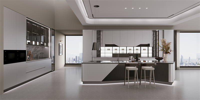 ·原創設計語言:源自鉆戒輪廓的門型,以戒指拉伸開的獨特輪廓融入門型設計,以左右圓弧+上下裝飾線勾勒立體層次,搭配鋅合金拉手,是功能與藝術、創新的完美融合;游艇造型中島臺與花瓣門板的組合,將豪華游艇的美學融入廚房空間。